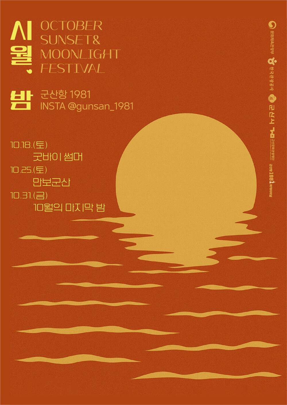 [시월, 밤]은 군산시와 군산문화관광재단이 문화체육관광부와 한국관광공사의 2025 지역주도형 관광서비스 경쟁력 강화 사업을 통해 '군산항 1981' 공간을 시민과 여행객에게 알리고 채워나가는 프로젝트입니다.